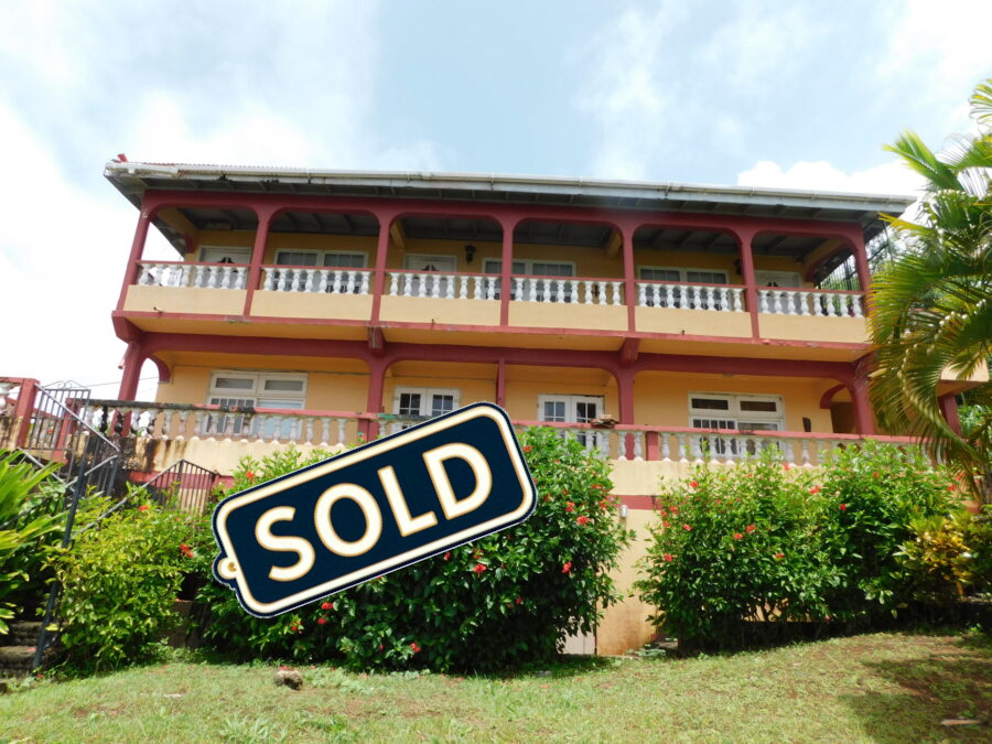 Framed by mature gardens and grounds and offering a truly beautiful view of the Atlantic Ocean, this two-story, five-bedroom apartment complex is located on 5,004 square feet of land in Calibishie, Dominica. The building was constructed circa 1997 and has a gross external floor area of 3,472 sq. ft. The first floor (1,536 sq. ft.) consists of two 2-bedroom apartments, each containing a bathroom, kitchen/living/dining room. The second floor is 1,685 sq. ft. and hosts three 1-bedroom apartments each consisting of a bathroom, kitchen/living/dining room. Additionally, there is a rear and front verandah on the first floor and ground floor. The building also has a small storeroom on the basement level that measures 251 sq. ft. The roof of the building is damaged and presently covered with tarpaulin, however once repaired it would be perfect for letting as rental accommodations.